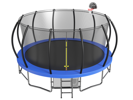 15FT Trampoline with Basketball Hoop Inflator and Ladder, 6pcs extra safety net pole sleeves- Blue