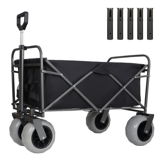 Foldable Garden Cart with Heavy-Duty Wheels & 480lbs Load Capacity, Portable Utility Wagon for Camping, Sports, Groceries, black
