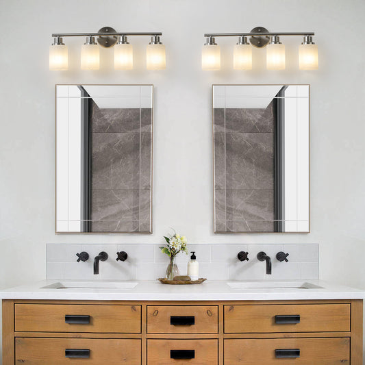 24' Modern 4-Light Vanity Wall Sconce, Brushed Nickel Finish with Frosted Glass Shades for Bathroom or Hallway Lighting (No Bulbs)