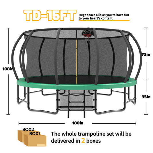 15FT Trampoline with Basketball Hoop - Recreational Trampolines with Ladder ,Shoe Bag and Galvanized Anti-Rust Coating