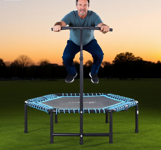 DOUBLE FISHHigh-Quality Adjustable Foam Handle 1 Mini Trampoline 40' - Supports Up To 400lbs, Black Rectangular Fitness Rebounder For Adults - Ideal For Indoor & Outdoor Workouts Eas