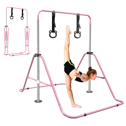Pink Multi-Functional Adjustable Height Children's Horizontal Gymnastic Bar With Bear Rings