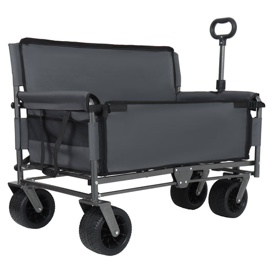 3-in-1 Convertible Folding Wagon Cart with Bench Seat & Storage - 500lbs Heavy-Duty Utility Wagon, 180L Capacity All-Terrain Wheels for Camping, Beach, Sports, Garden, gray