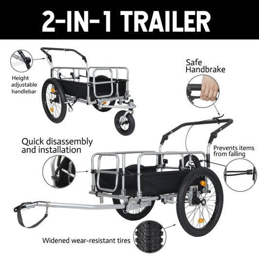 3-in-1 Heavy-Duty Bike Cargo Trailer -Bike Compatible Steel Frame, 110lb Capacity, Convertible Stroller & Pull Cart w/Suspension, 20 *2-3/8' FAT tire
