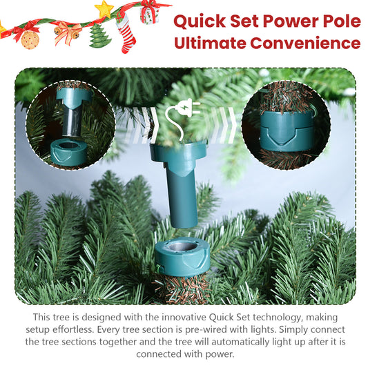 7ft Pre-Lit PVC Christmas Tree with 400 UL Lights, 1072 Tips, Auto-Unfold Memory Wire, Easy Assembly with Stable Metal Stand – Full Artificial Holiday Tree