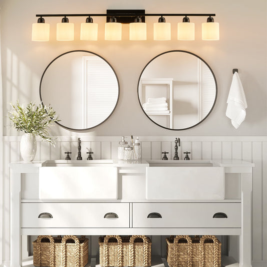 8-Light Bathroom Light Fixtures Over Mirror, 52inch Modern Matte Black Vanity Lights with White Frosted Glass Shade, Bathroom Wall Lamp Sconces for Mirror Bedroom, Living Room Hallway