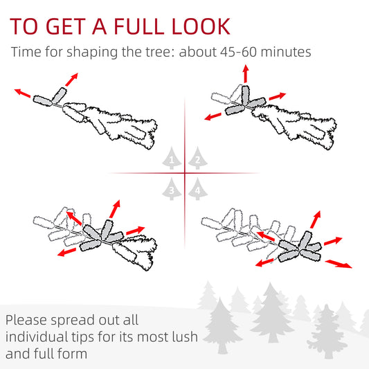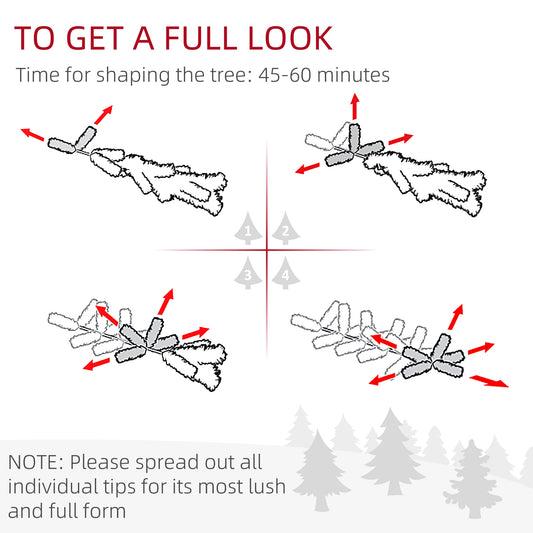 HOMCOM 7.5ft Tall Prelit Artificial Christmas Tree Holiday Décor with 850 Snow Flocked Branches, 350 Warm Yellow Clear Lights, Auto Open, Extra Bulb