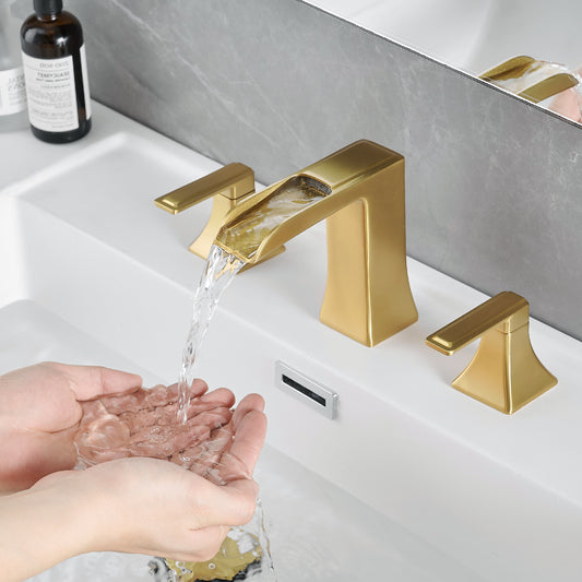 Sink Faucet With Deck Plate Waterfall Nickel Gold with Pop Up Drain and Supply Lines Bathroom faucets for Sink 1 Hole One Handle Faucets Vanity Bath Mixer Tap