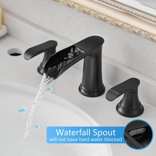 Bathroom Faucets for Sink 3 Hole Black 8 inch Widespread Bathroom Sink Faucet with Pop Up Drain Double Lever Handle Faucet Bathroom Vanity Faucet Basin Mixer Tap Faucet with Hose
