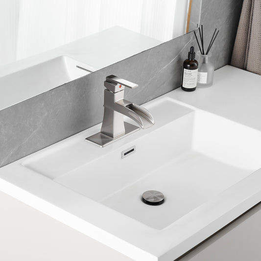 Sink Faucet With Deck Plate Waterfall Brushsed with Pop Up Drain and Supply Lines Bathroom faucets for Sink 1 Hole One Handle Faucets Vanity Bath Mixer Tap