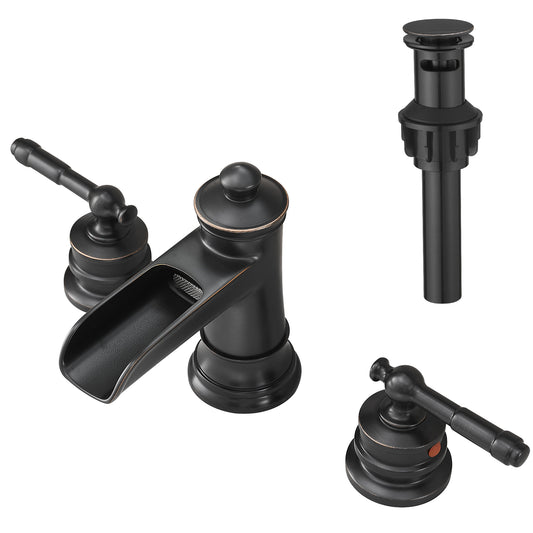 Bathroom Faucets for Sink 3 Hole ORB 8 inch Widespread Bathroom Sink Faucet with Pop Up Drain Double Lever Handle Faucet Bathroom Vanity Faucet Basin Mixer Tap Faucet with Hose