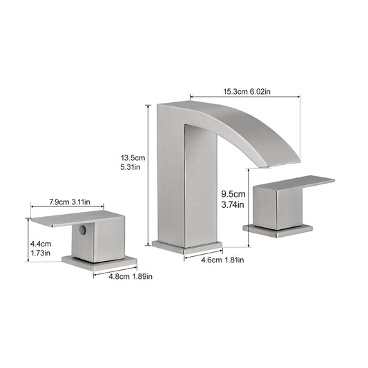 Bathroom Stainless Steel Faucets for Sink 3 Hole Nickel Gold 8 inch Widespread Bathroom Sink Faucet Double Lever Handle Faucet Bathroom Vanity Faucet Basin Mixer Tap Faucet with Hose