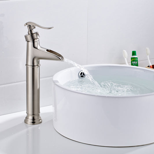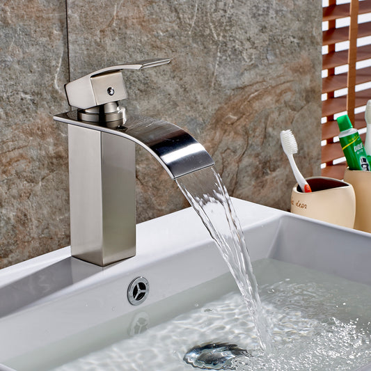 Brushed Nickel Bathroom Faucet Faucet for Bathroom Sink Single Hole Bathroom Waterfall Faucet Modern Single Handle Vanity Basin Faucet