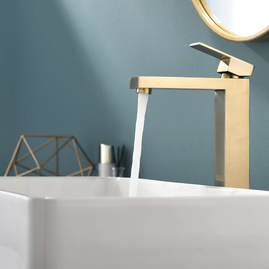 Gold Bathroom Faucet, Brushed Gold Faucet for Bathroom Sink, Gold Single Hole Bathroom Faucet Modern Single Handle Vanity Basin Faucet