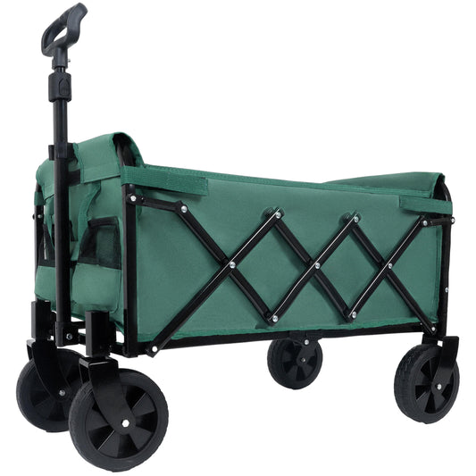 Expandable Dual-Layer Utility Wagon with 100% Extra Space - Grocery Cart for Camping, Shopping, Sports, Gardening, Fishing, Supports 225lbs, Green