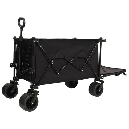 With Push Handle, 480Lbs Collapsible Wagon with Canopy, Wagon cart with 7' All-Terrain Wheels, Lightweight Foldable Wagon, Large Capacity for Camping, Shopping, Sports, and Garden Use, black