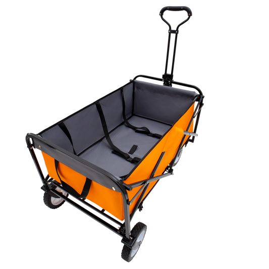 Collapsible Foldable Wagon Cart with strapping system Beach Wagon Utility Cart Utility Wagon Grocery Cart for for Camping Shopping Sports Gardeing Fishing Supports 360lbs All-Terrain Wheels orange