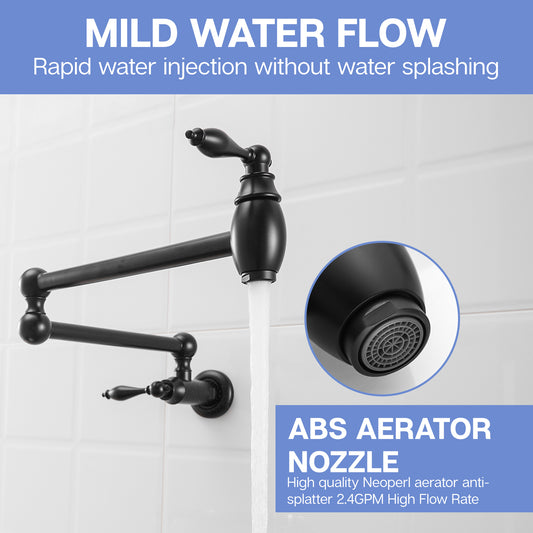 Pot Filler,Wall Mount Commercial Pot Filler Faucet,Brass Material Kitchen Folding Faucet,Coffee Machine Faucet with Stretchable Double Joint Swing Arms,Style A,Blackened