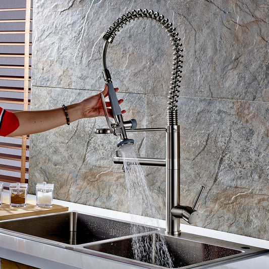 Heavy Duty Commercial Style Kitchen Sink Faucet, Single Handle Pre-Rinse Spring Sprayer Kitchen Faucets, High Arc Pull Down Brushed Nickel Kitchen Faucet
