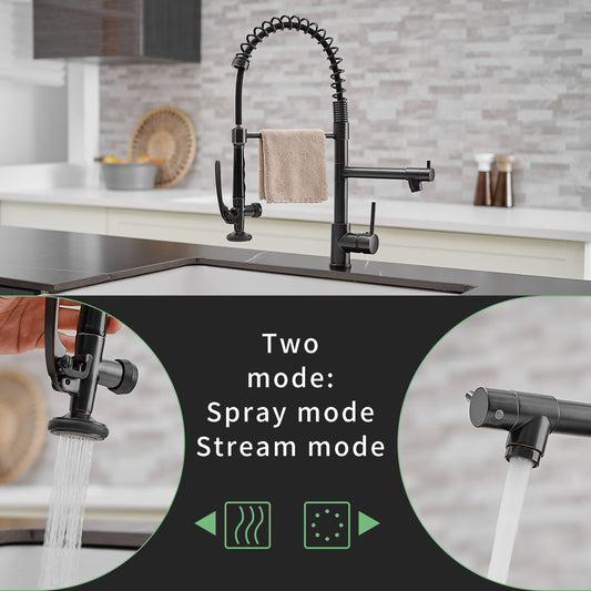 Commercial Kitchen Faucet Pull Down Sprayer Black and Nickel,Single Handle Kitchen Sink Faucet
