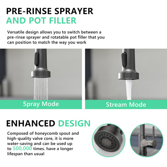 Commercial Kitchen Faucet with Pull Out Sprayer, Single Handle Single Lever Kitchen Sink Faucet