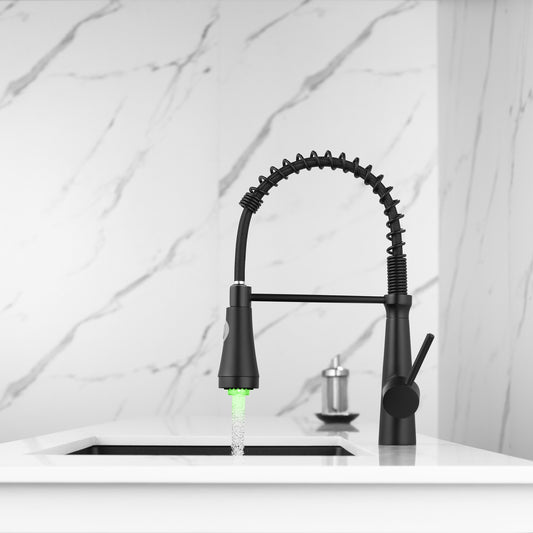 Commercial LED Kitchen Faucet with Pull Down Sprayer, Single Handle Single Lever Kitchen Sink Faucet