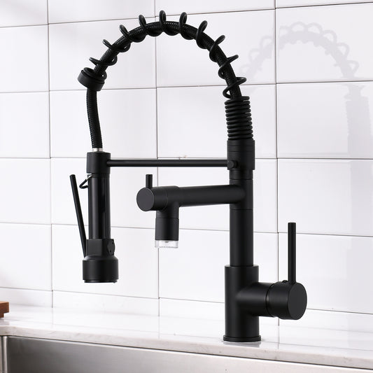 LED Commercial Kitchen Faucet with Pull Down Sprayer, Single Handle Single Lever Kitchen Sink Faucet