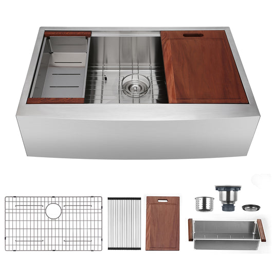 33-inch Farmhouse Single Bowl Stainless Steel Workstation Kitchen Sink 18 Gauge