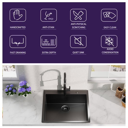 25x22inch Gunmetal Black Topmount 304 Stainless Steel 18 Gauge Kitchen Sink