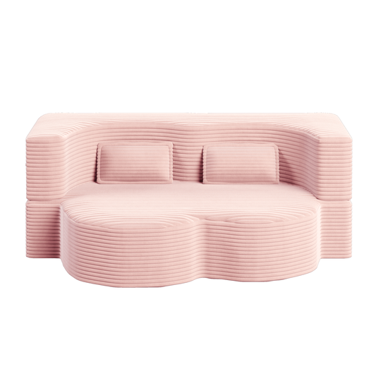 Modern Floor Sofa with 2 Pillows,Convertible Plush Corduroy Foam-Filled Sleeper Sofa Bed,15' Full Size Folding Mattress for Living Room,Guest Bed,no assembly required,Baby Pink