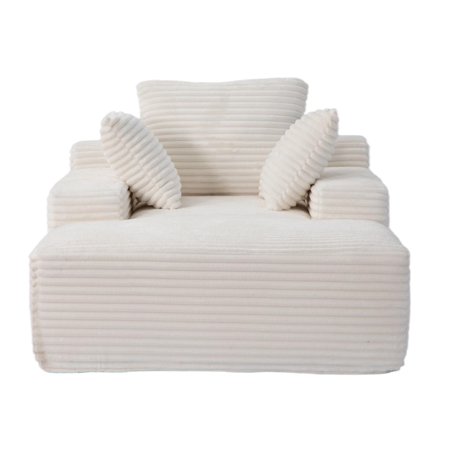 Oversized Chaise Lounge Chair Cozy Cloud Couch, Modern Plush Corduroy Upholstered Sleeper Sofa Daybed with 3 Throw Pillows and Wide Armrest for Living Room, No Assembly Required,White