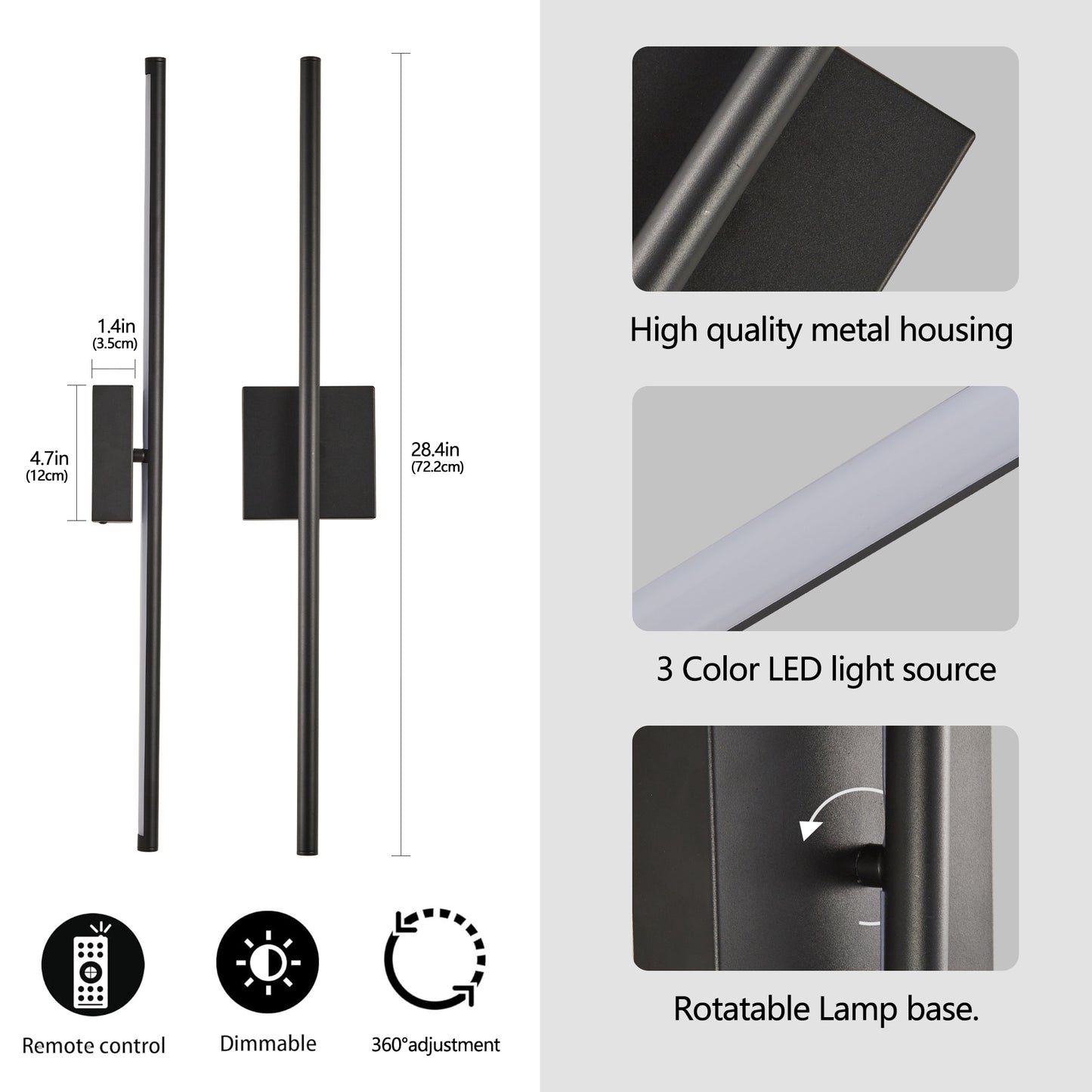 28' 2-Pack Modern LED Wall Sconce, Minimalist Indoor Wall Light Fixtures, Black Matte Finish for Living Room, Bedroom, Hallway, Hotel, and Home Decor