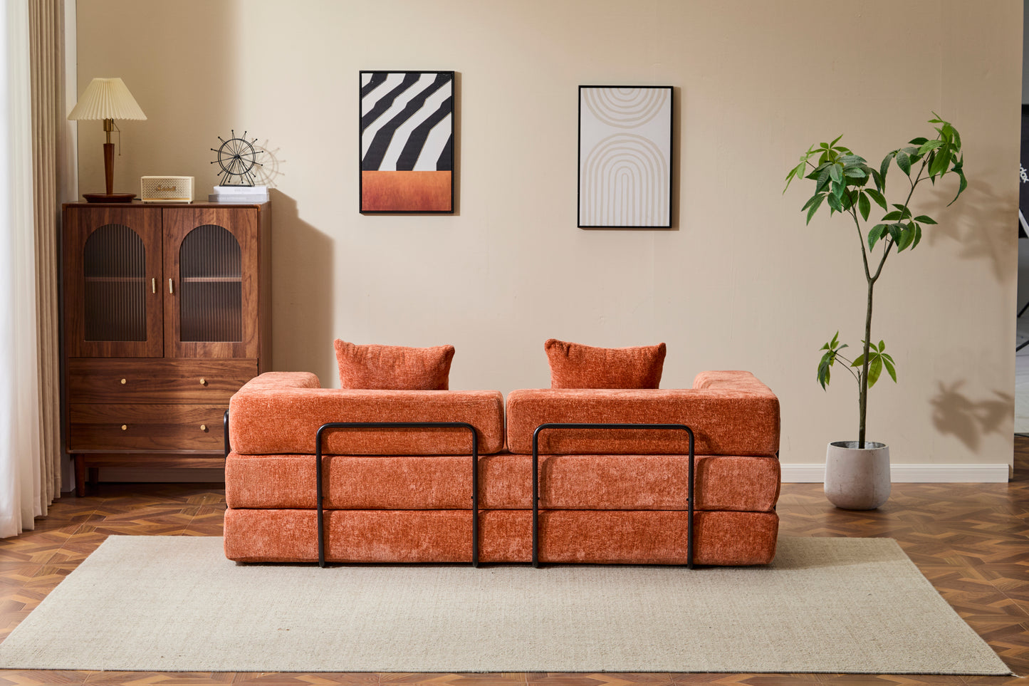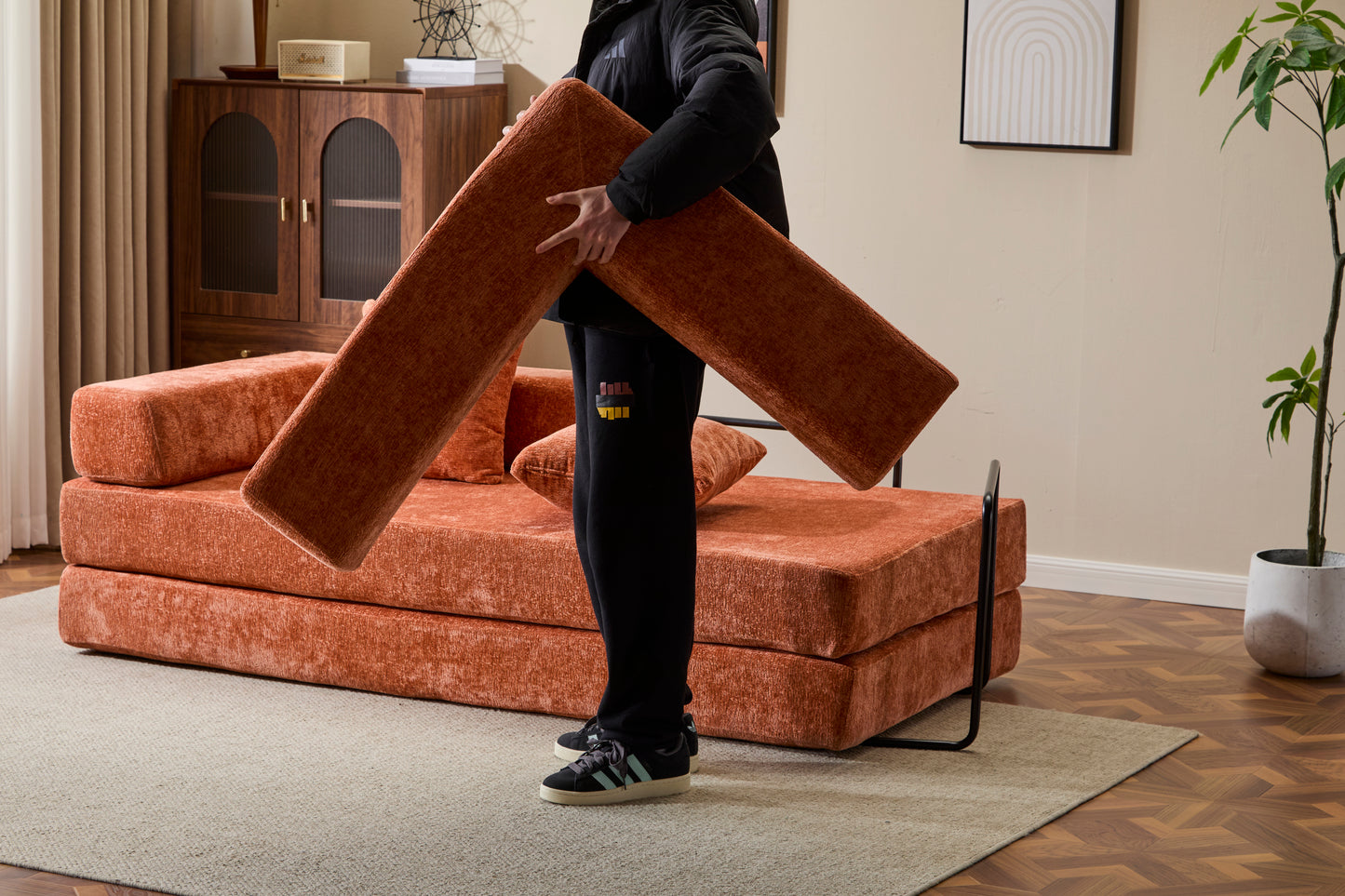 Floor Couch,Compression Sofa,Convertible Floor Sofa Bed-with Pillow Back Support Armrest,Comfy Futon Couch Lounge Sleeper Bed,chenille fabric,for Living Room Bedroom (orange)