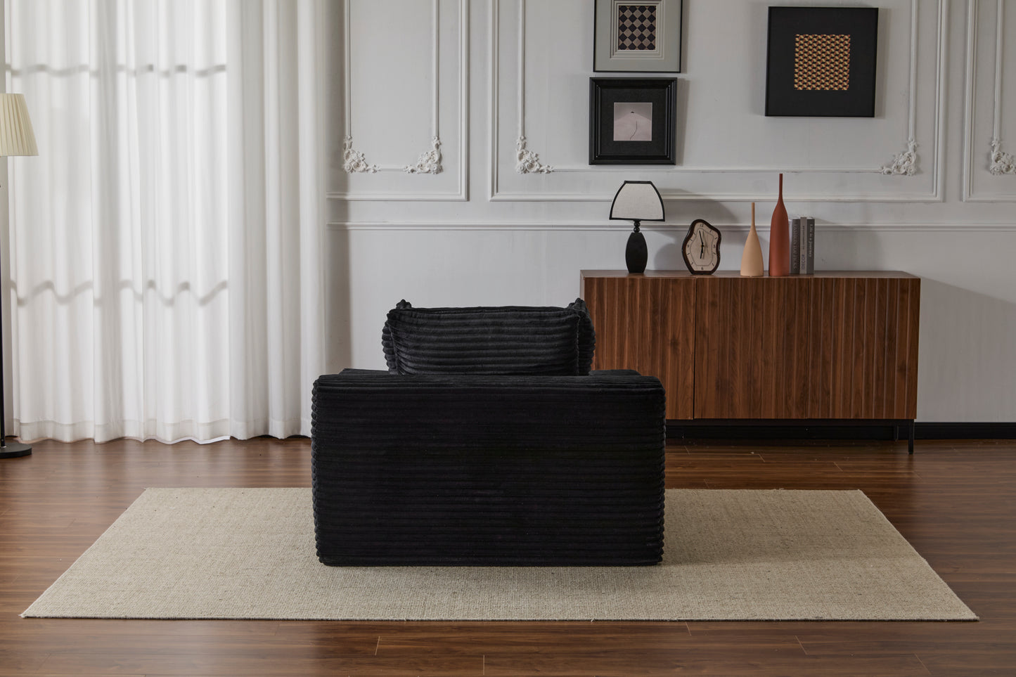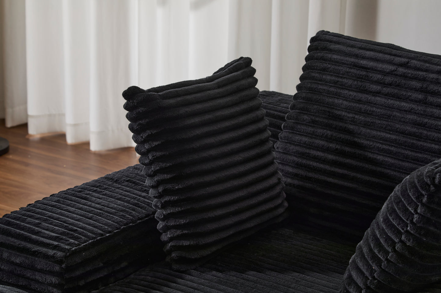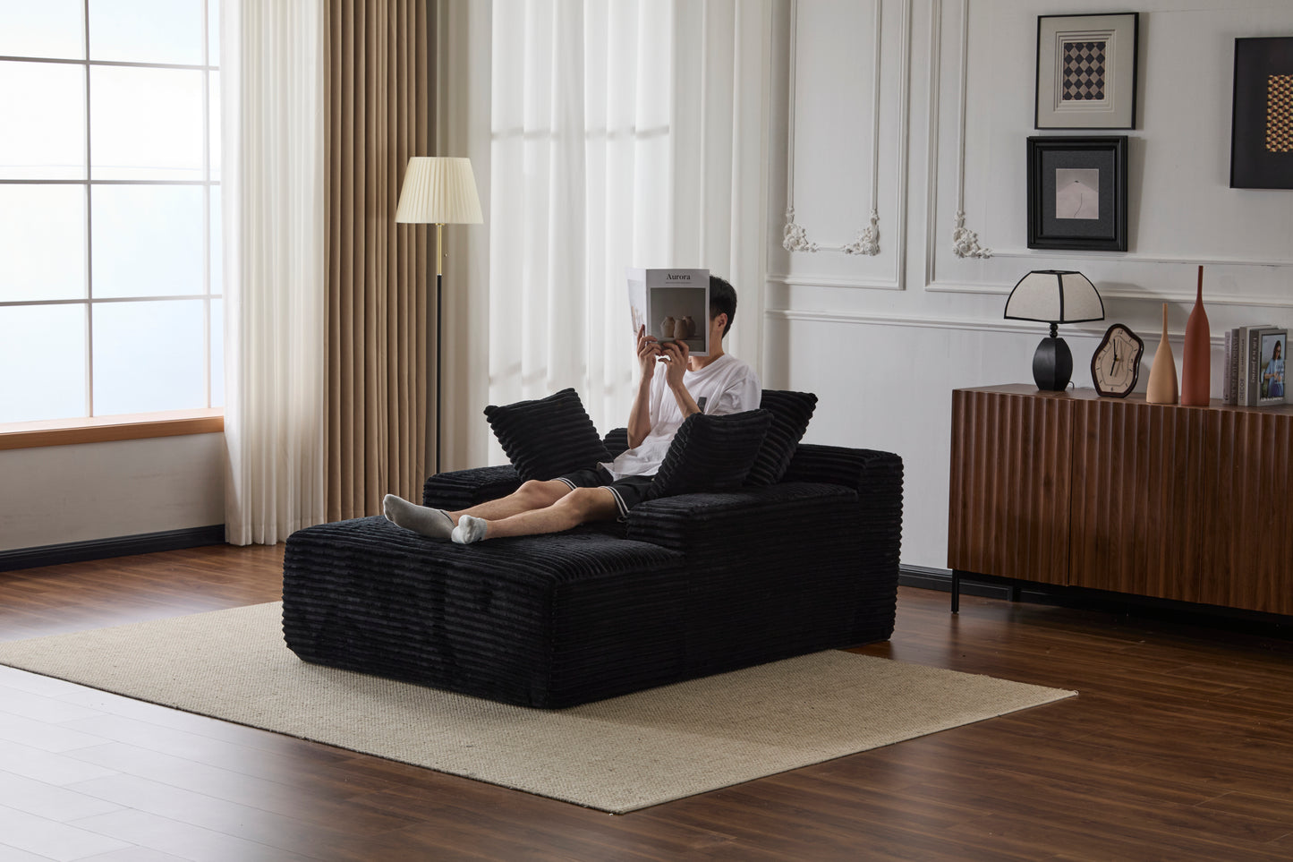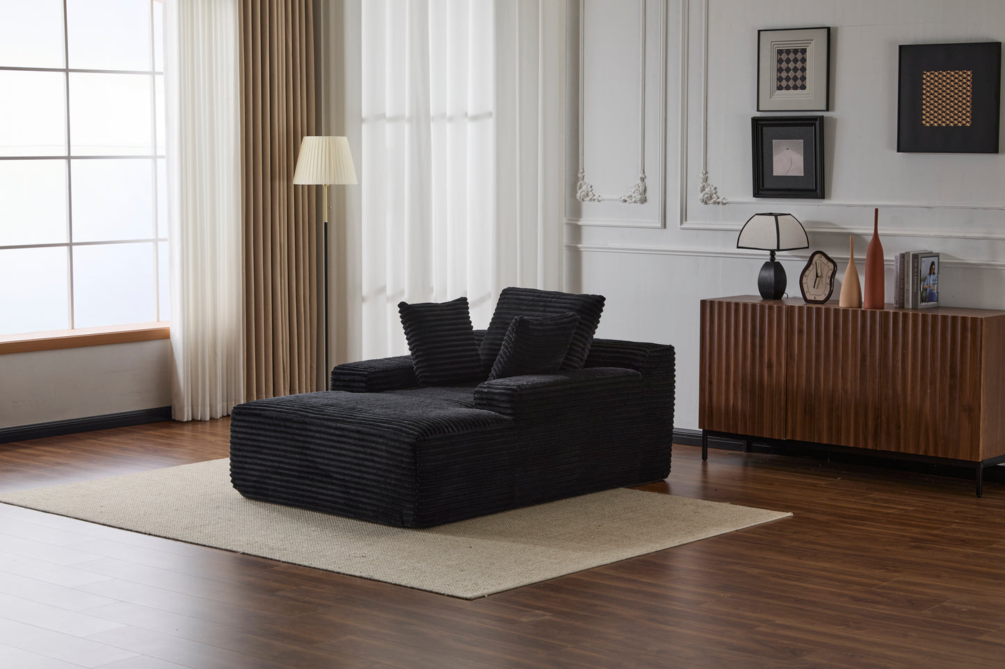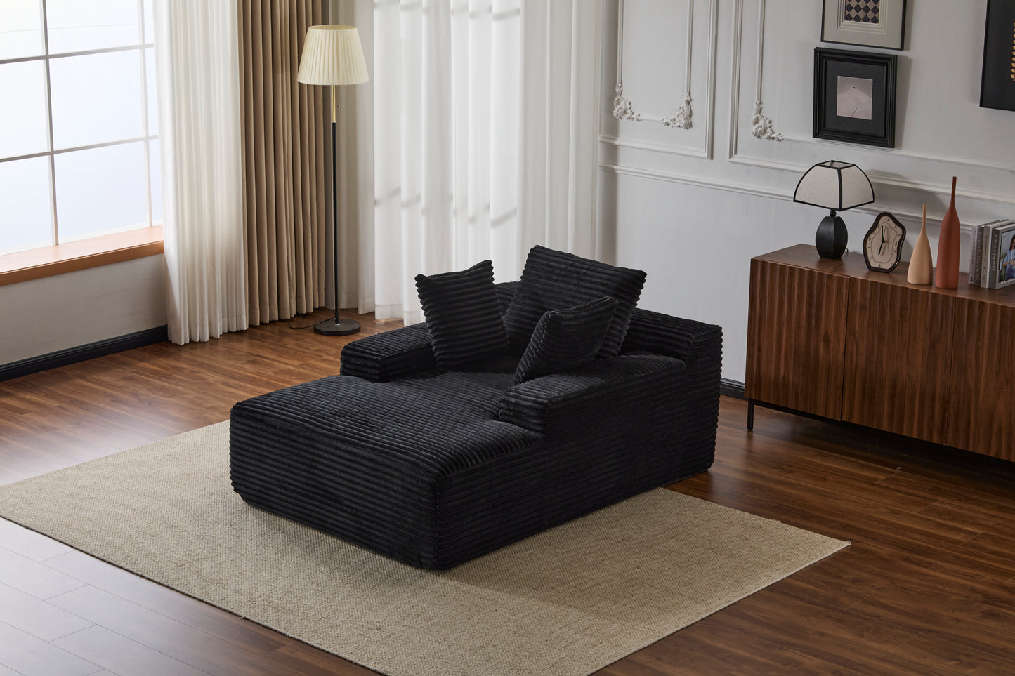 Oversized Chaise Lounge Chair Cozy Cloud Couch, Modern Plush Corduroy Upholstered Sleeper Sofa Daybed with 3 Throw Pillows and Wide Armrest for Living Room, No Assembly Required,Black