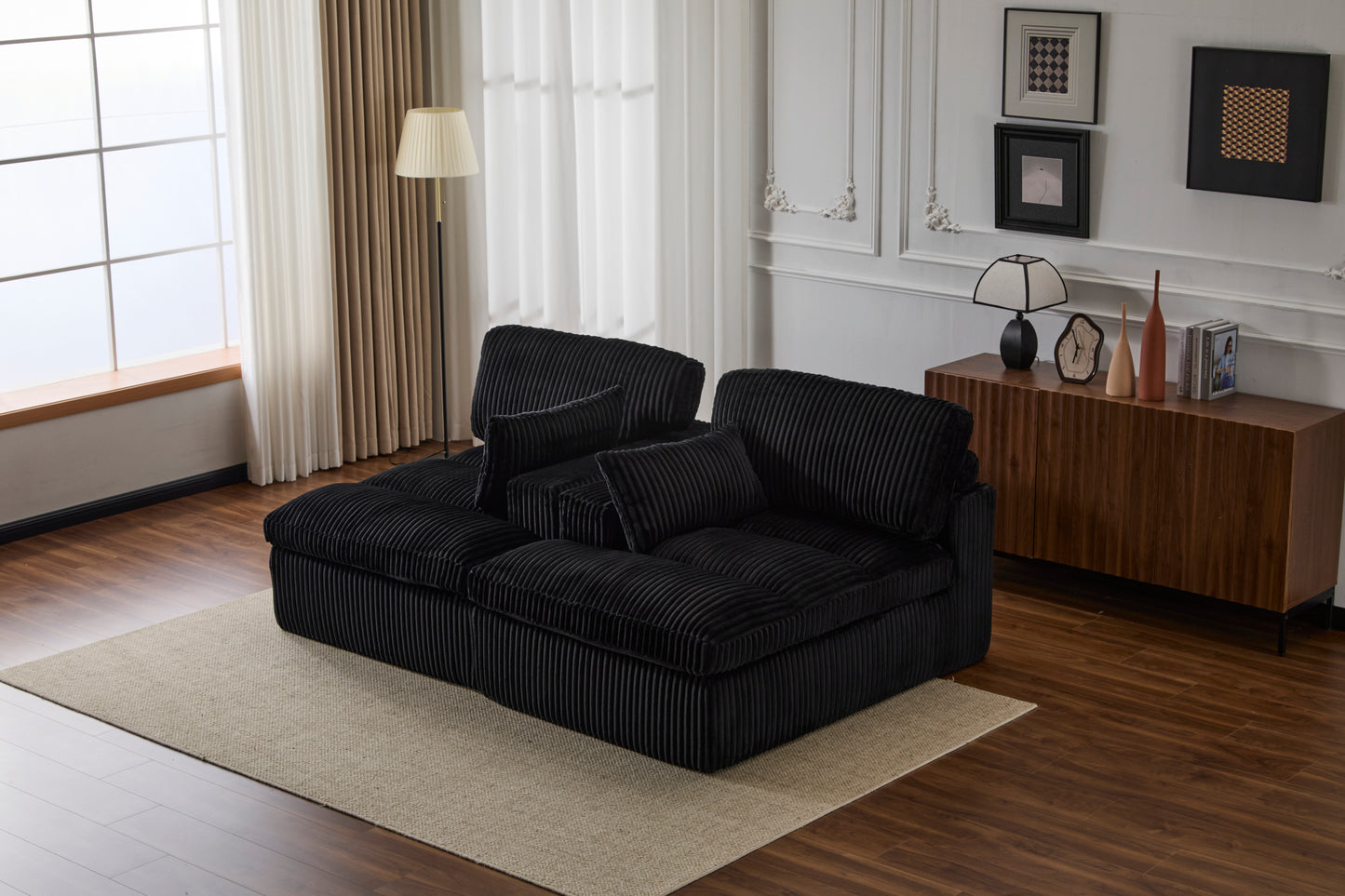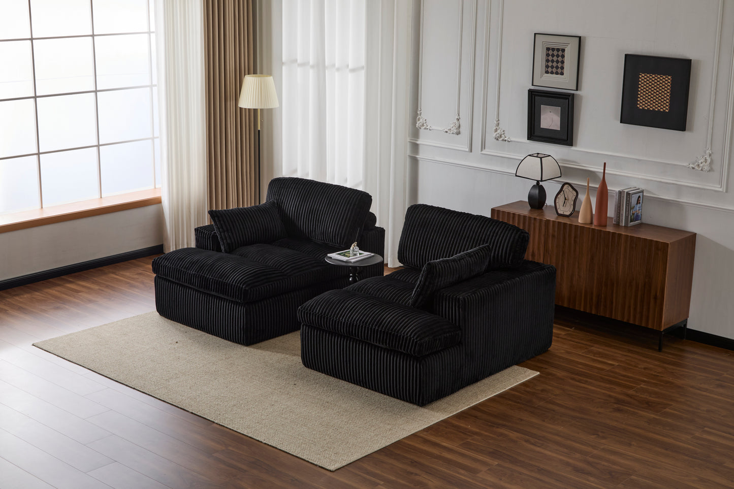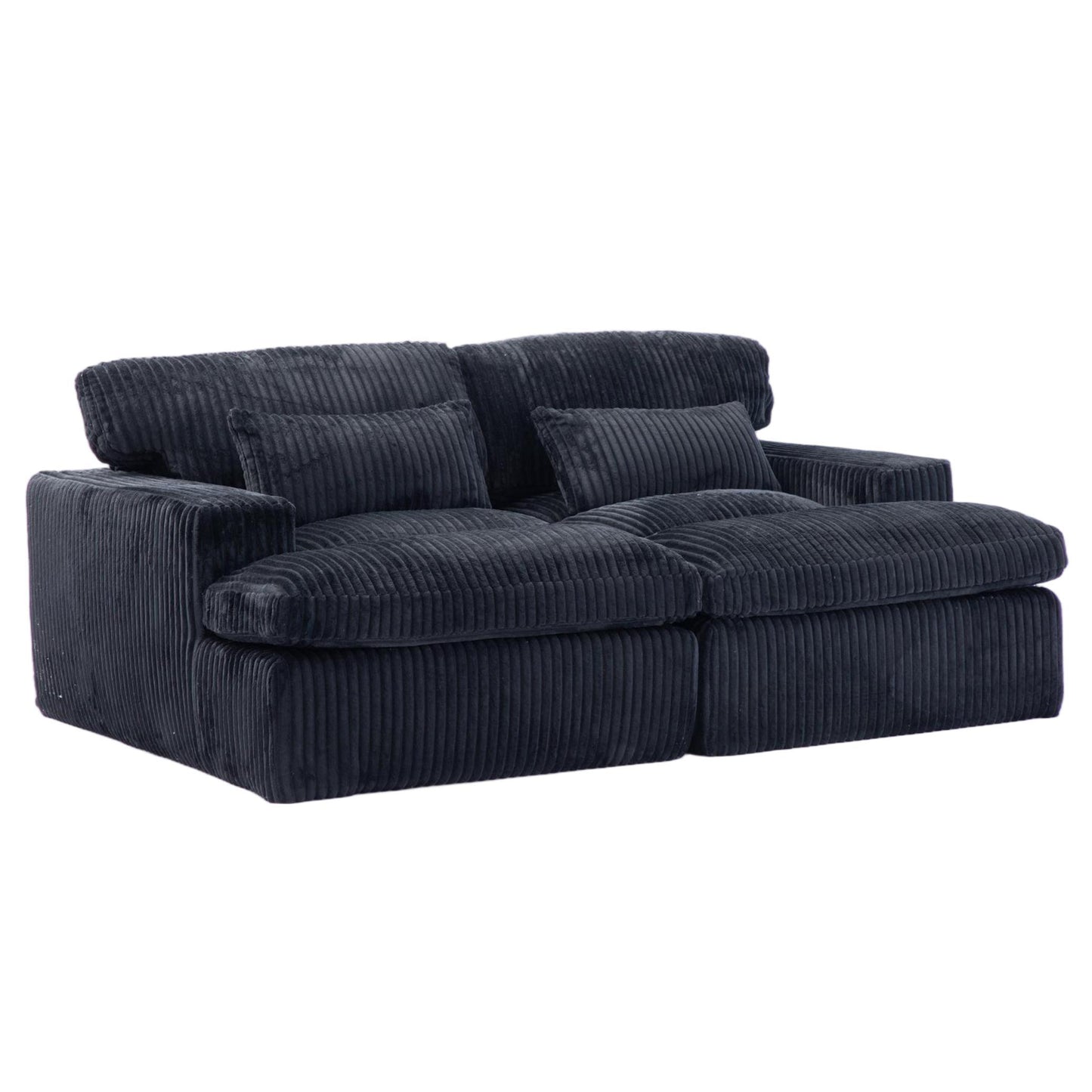 Double Chaise Lounge Chair Indoor,Oversized Upholstered Sleeper Cloud Couch,Deep Seat Luxury Sofa Bed,Sectional Sofa Chaise Love-seat,Corduroy Reading Chair for Living Room,No Assembly Required,Black