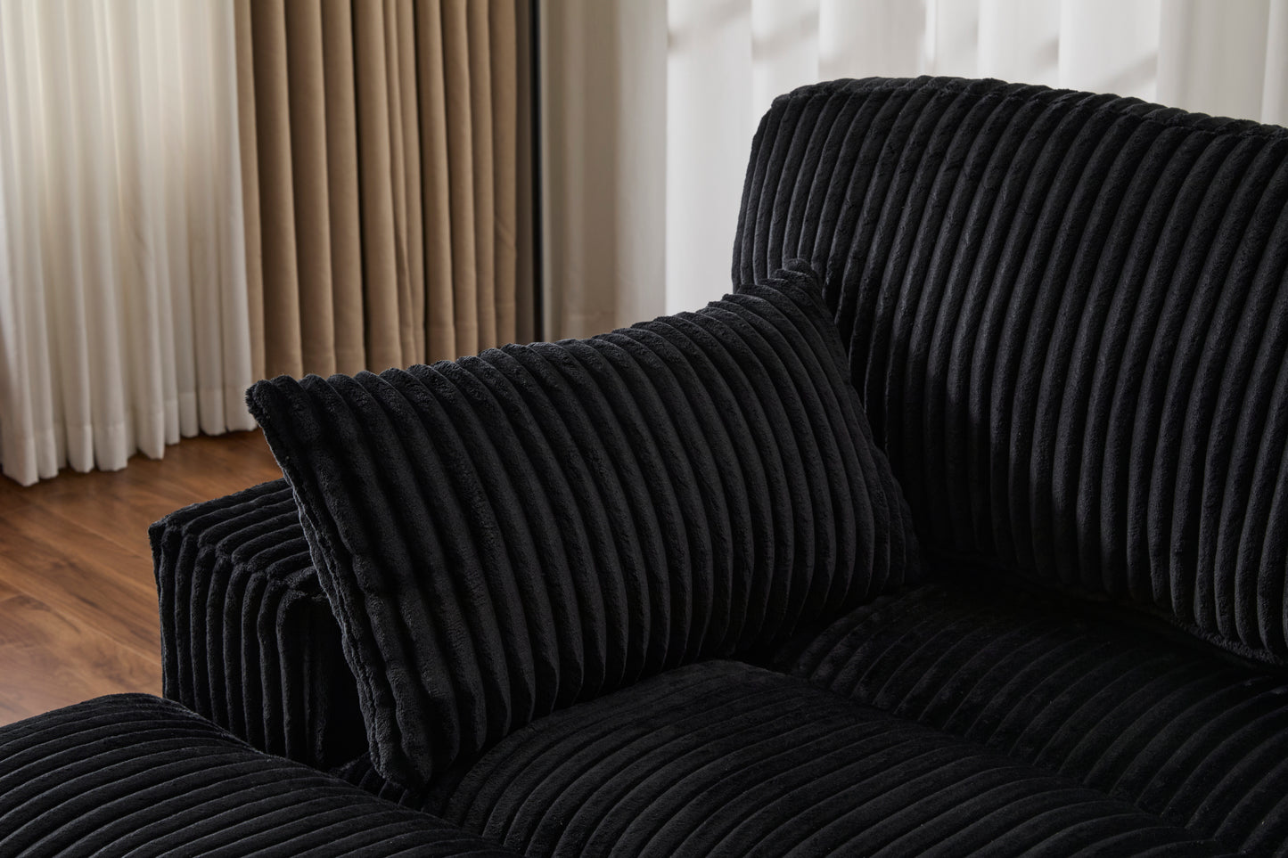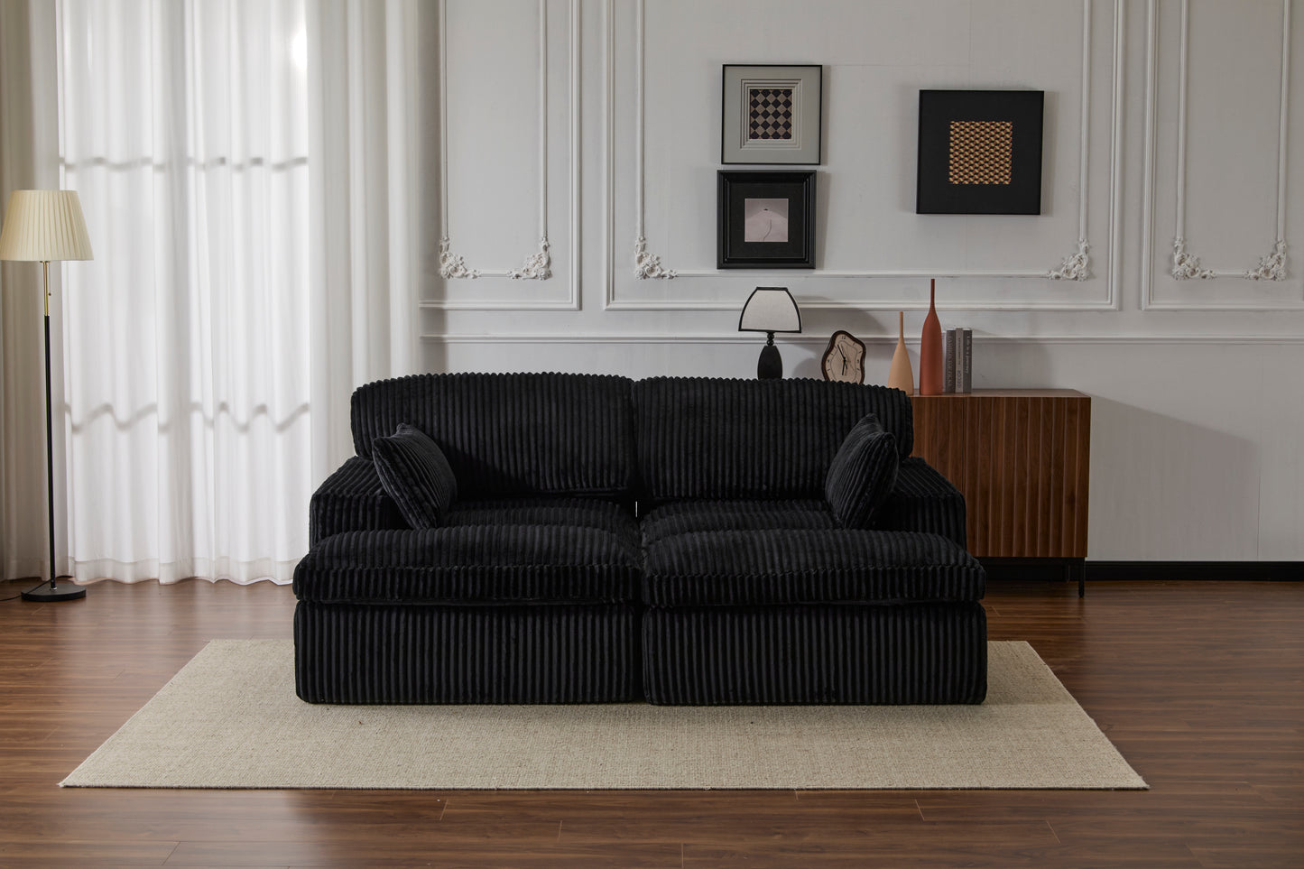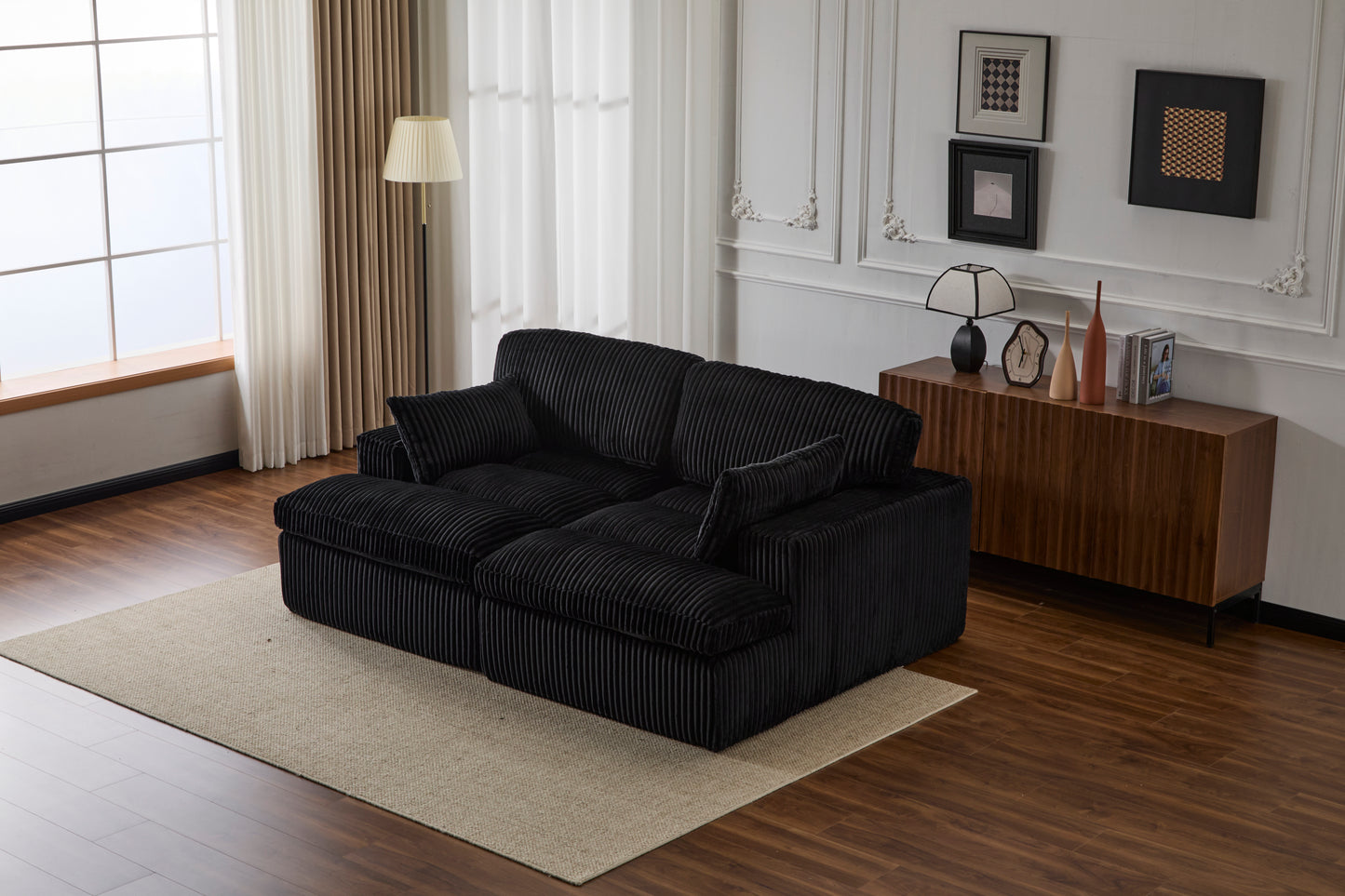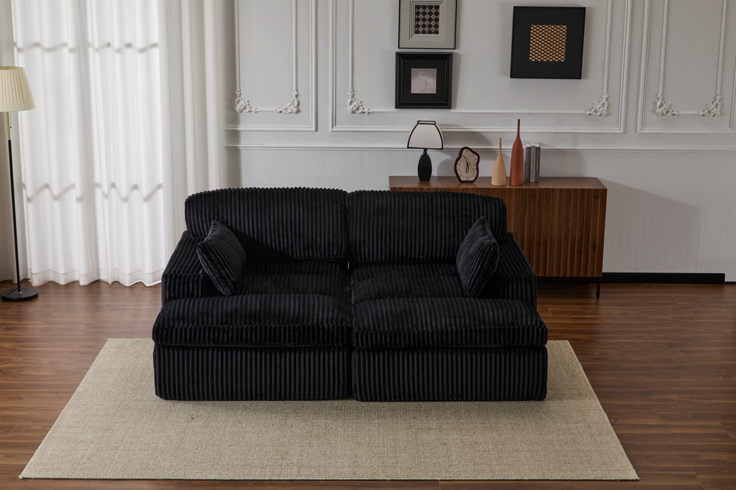 Double Chaise Lounge Chair Indoor,Oversized Upholstered Sleeper Cloud Couch,Deep Seat Luxury Sofa Bed,Sectional Sofa Chaise Love-seat,Corduroy Reading Chair for Living Room,No Assembly Required,Black