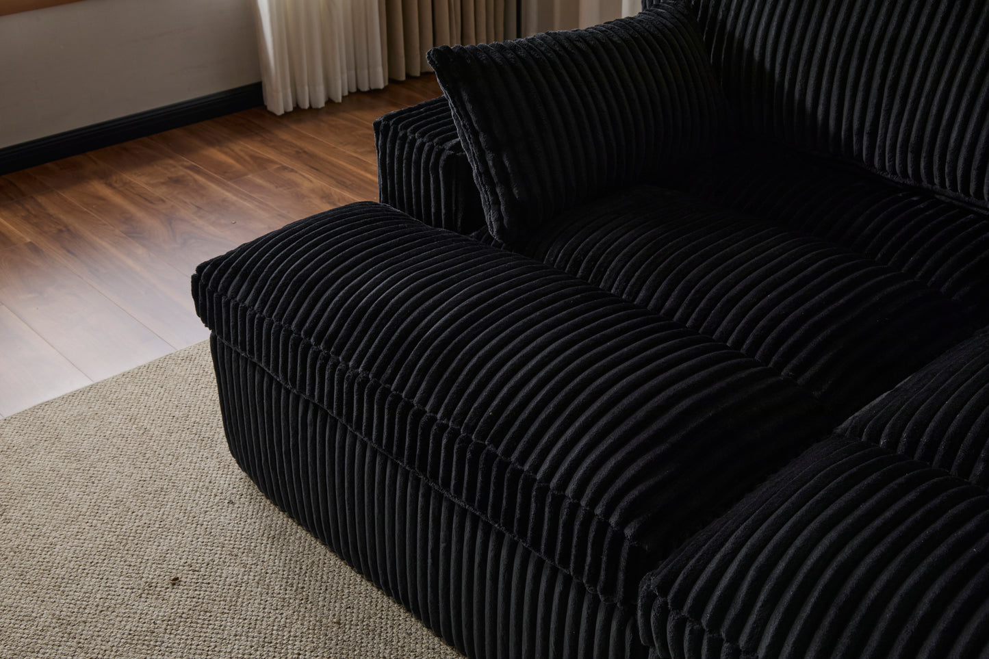 - 【Corduroy Comfort with Supportive Cushions】Wrapped in tactile corduroy, this sectional offers a comfortable feel. Foam-filled cushions provide support during movie or game nights, ensuring comfort through out.
