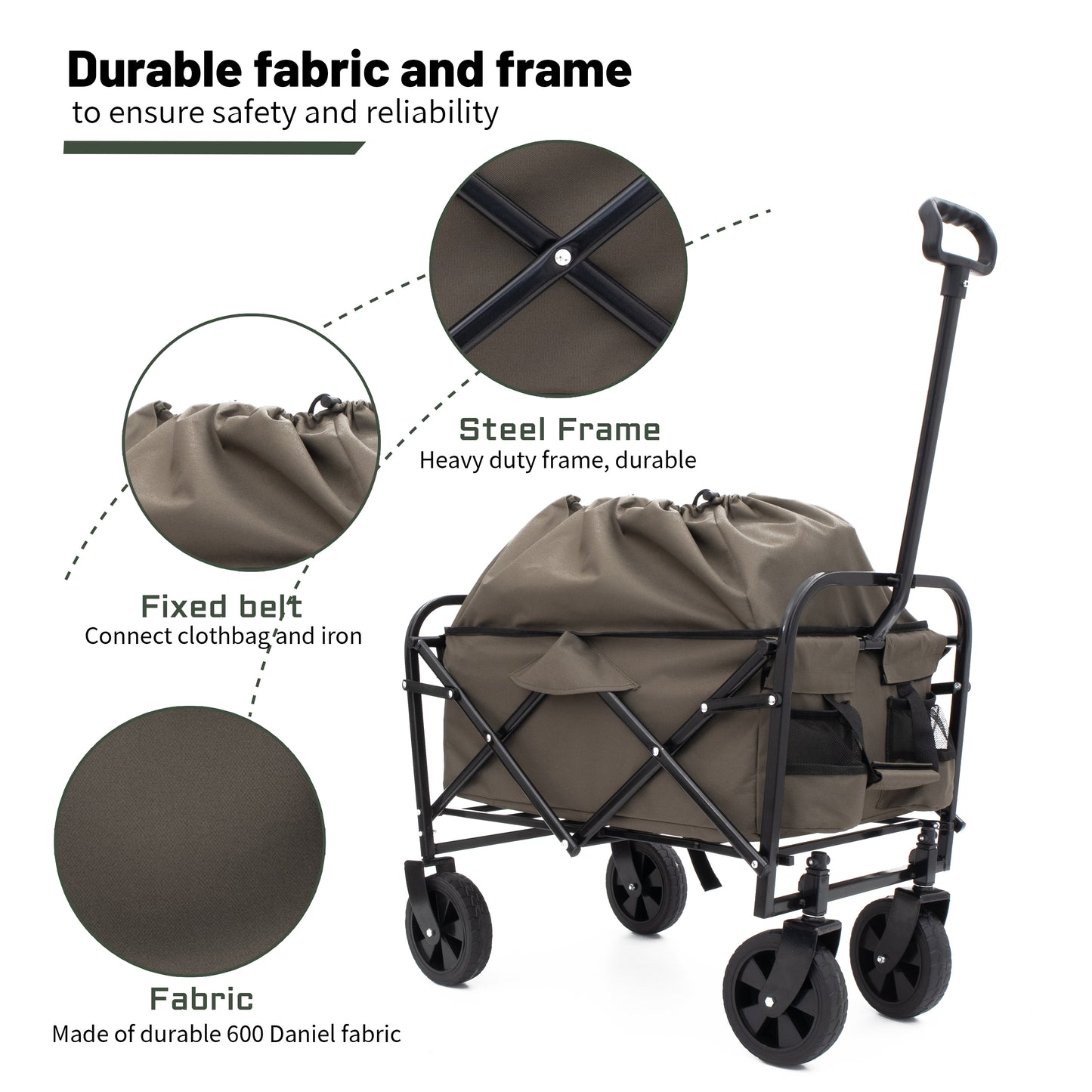 Minimeetall Multi-use Bag,Collapsible Foldable Wagon Cart Beach Wagon Heavy Duty Utility Cart Utility Wagon Grocery Cart for for Camping 3pcs plastic Liner bag /Cover , Olive green
