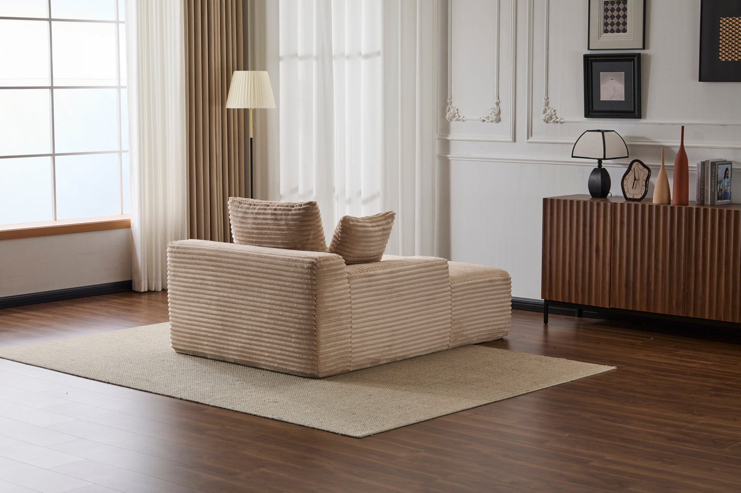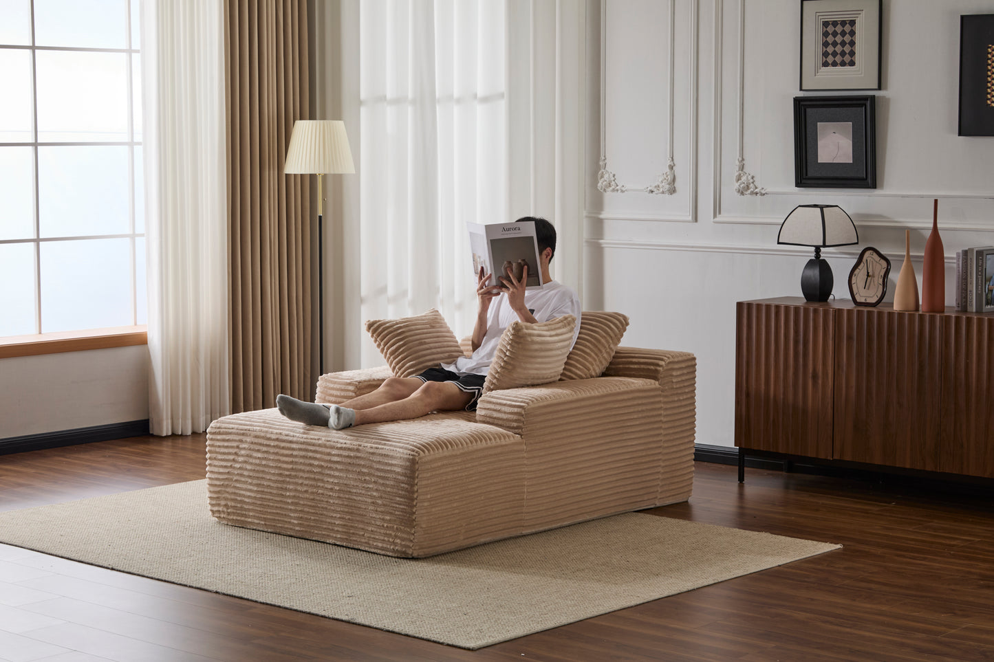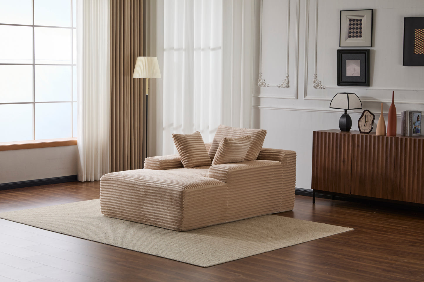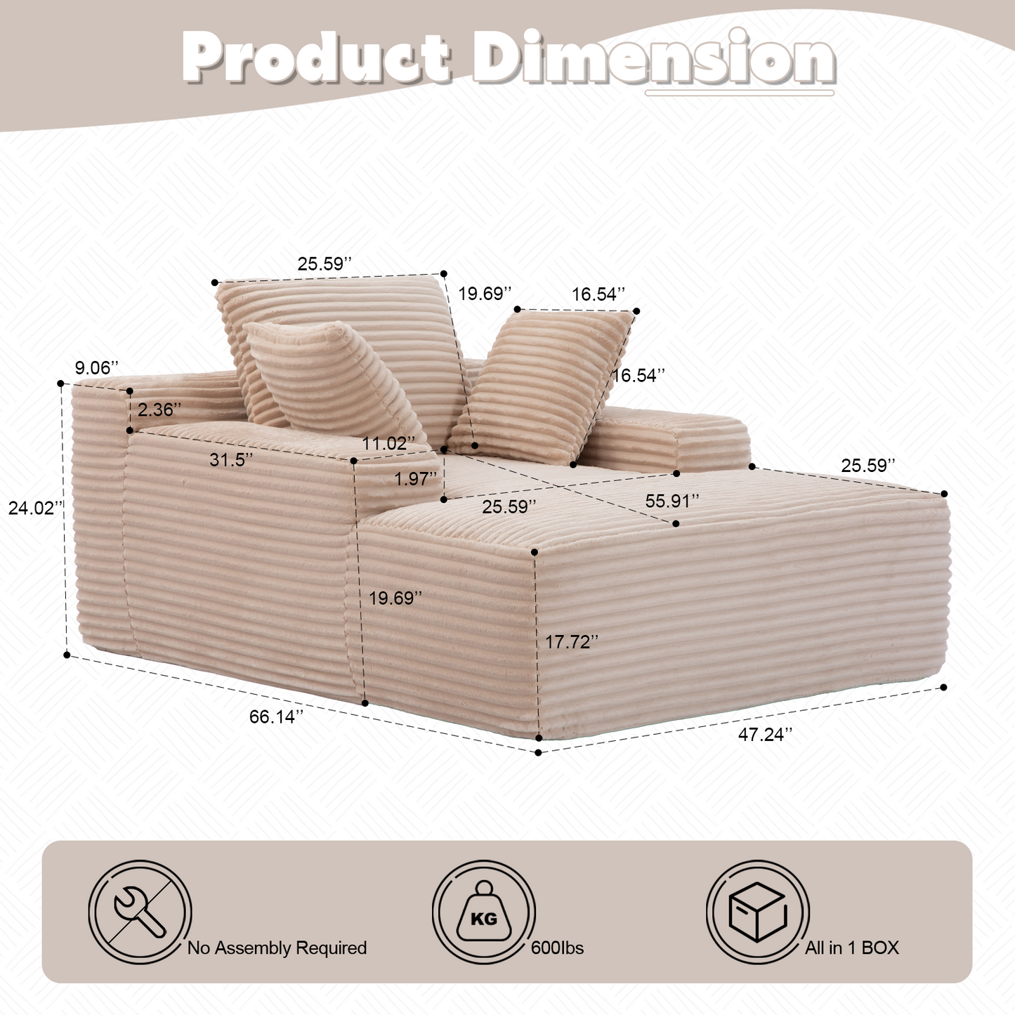 Oversized Chaise Lounge Chair Cozy Cloud Couch, Modern Plush Corduroy Upholstered Sleeper Sofa Daybed with 3 Throw Pillows and Wide Armrest for Living Room, No Assembly Required,Beige