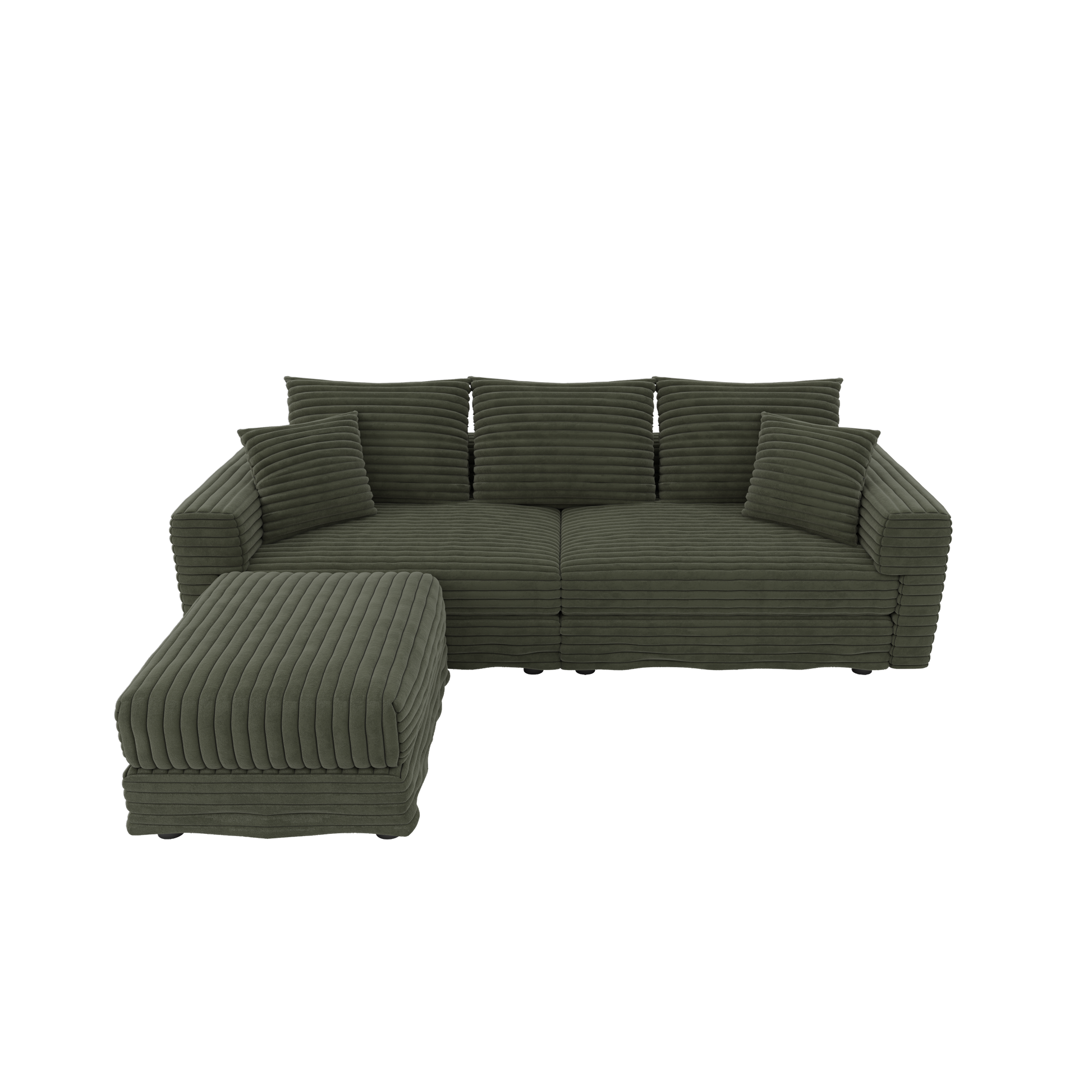 82.7 ' Plush Corduroy 3-Seat Sofa, Modern Comfy Upholstered Sofa Cloud Couch, Deep Seat Couches with Soft Pillows and 1 Ottomans, Convertible Sofa Lounge Chair, for Living Room,Apartment,Office,Green