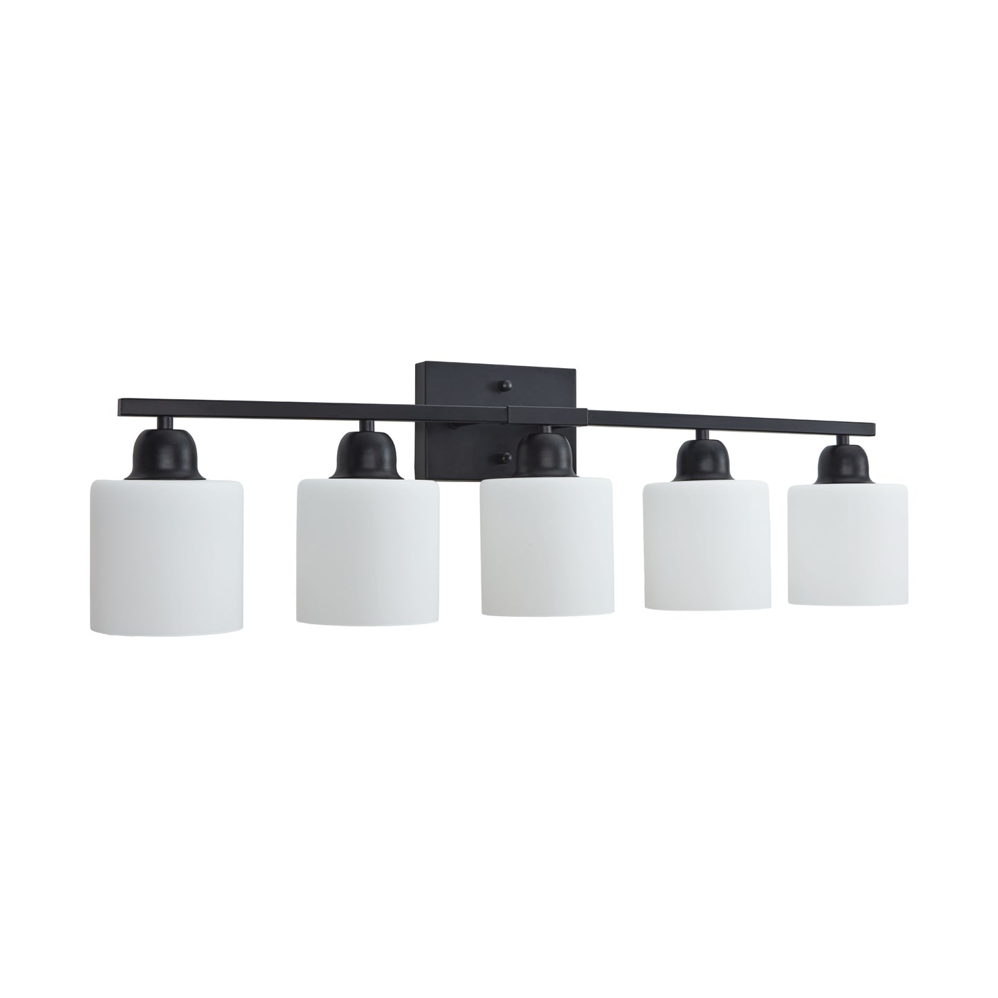 Black Bathroom Light Fixtures, 5-Light Modern Vanity Light Over Mirror, Wall Sconces with Milky Whit
