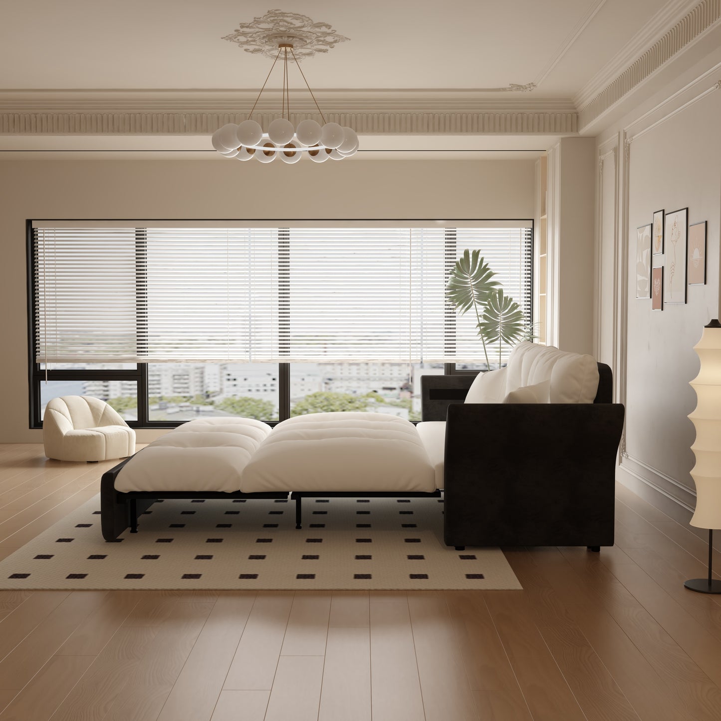 - 3-in-1 Convertible Sleeper Sofa Bed:Pull out the bed frame under the seat. There are two length options. When it is not fully pulled out, it becomes a chaise sofa, and when it is fully pulled out, this sofa can quickly turn into a Queen-size bed for resting.
