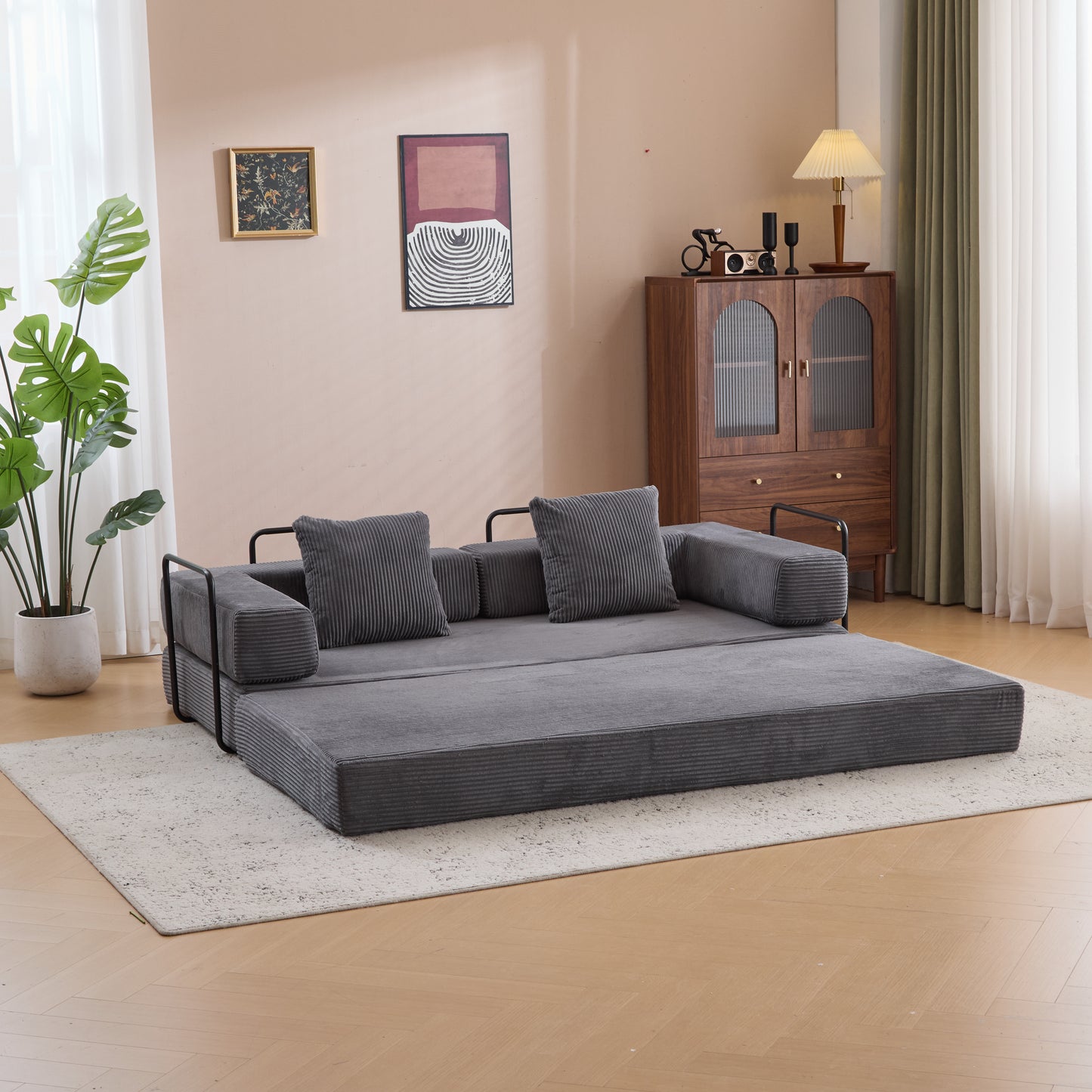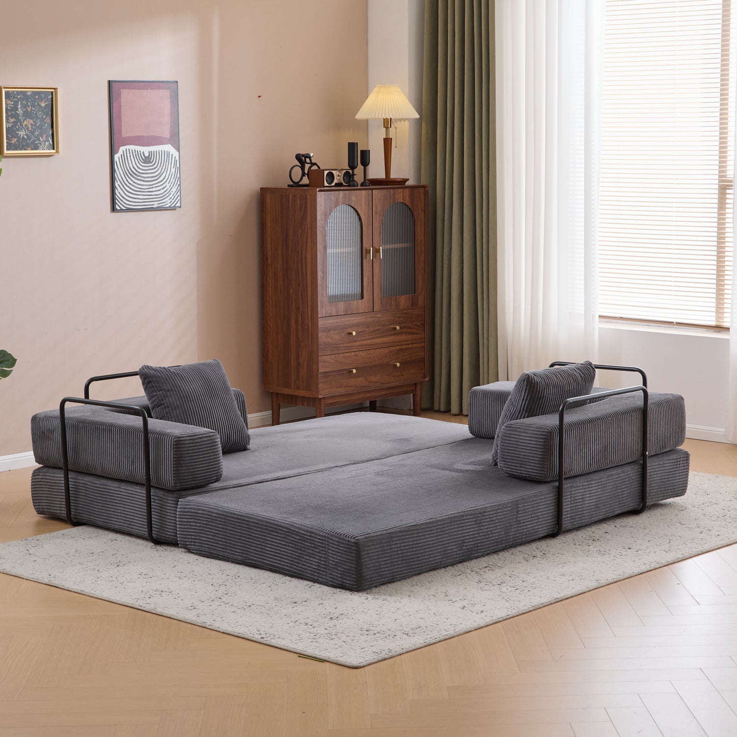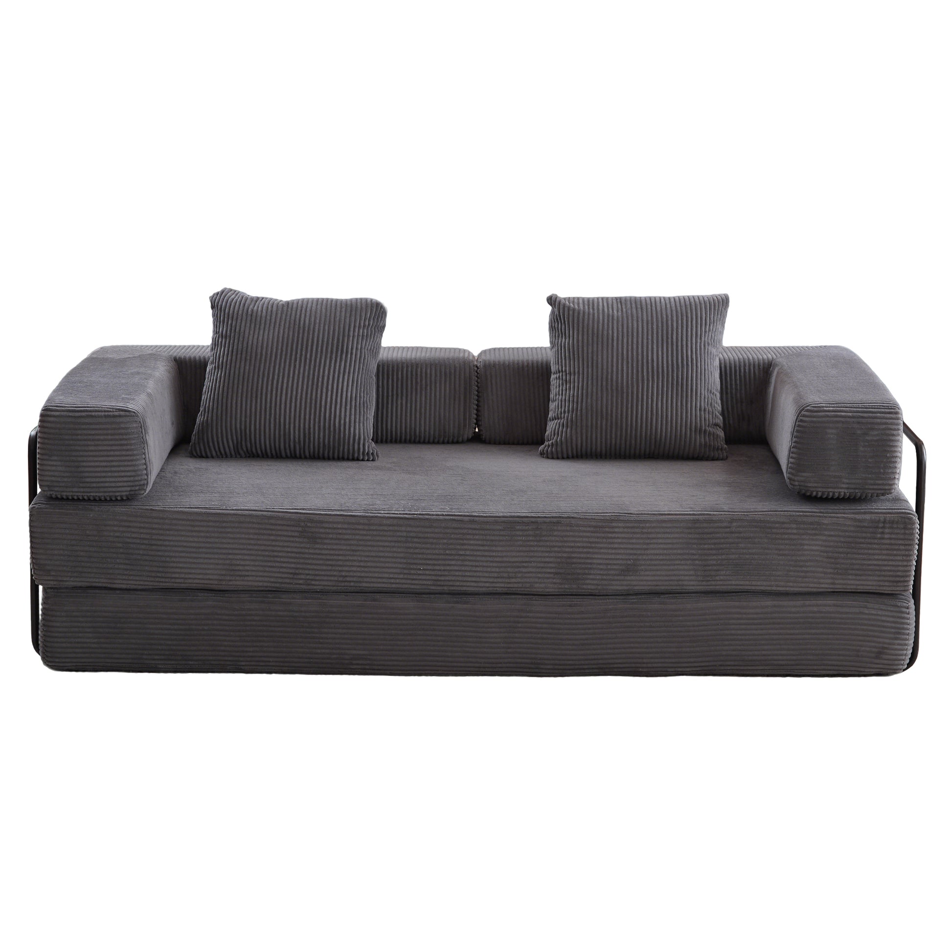Floor Couch,Compression Sofa,Convertible Floor Sofa Bed-with Pillow Back Support Armrest,Comfy Futon Couch Lounge Sleeper Bed,Corduroy Fabric,for Living Room Bedroom (dark grey)