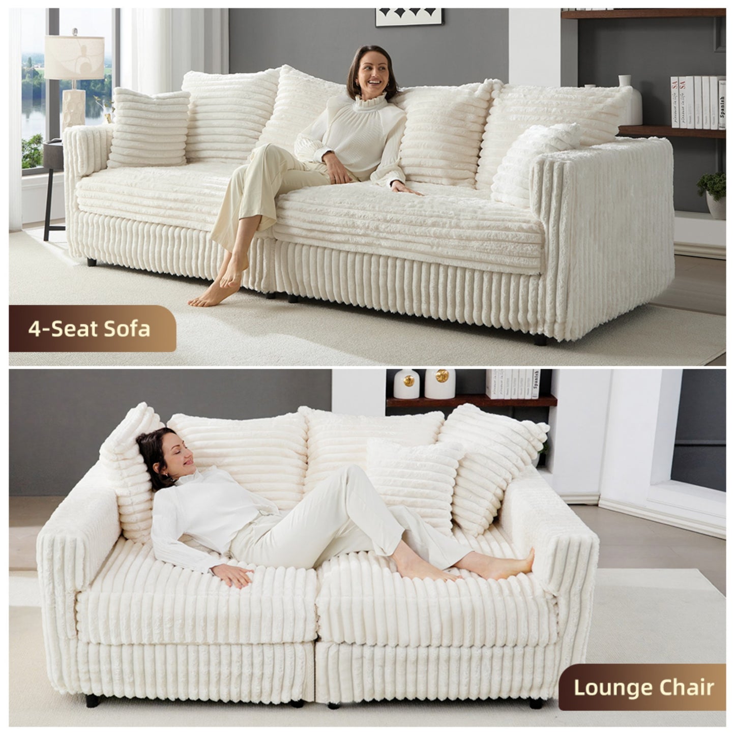 104.3' Plush Corduroy 4-Seat Sofa,Modern Comfy Upholstered Sofa Cloud Couch,Deep Seat Couches with Soft Pillows,Convertible Deep Seat Sofa Lounge Chair for Living Room Bedroom,Apartment,Office