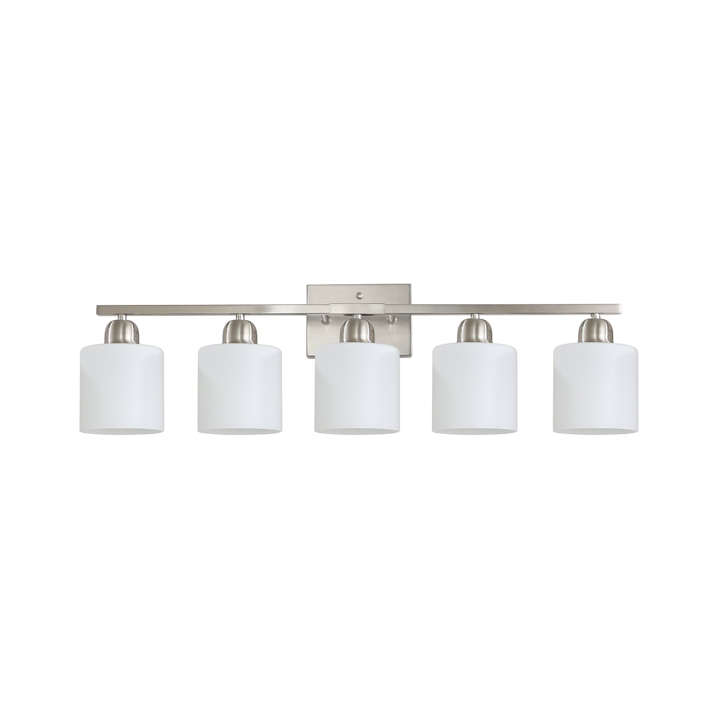 Brushed Nickel Bathroom Light Fixtures, 5-Light Modern Vanity Light Over Mirror, Wall Sconces with Milky White Frosted Glass Shades, E26 Socket (Bulbs Not Included)