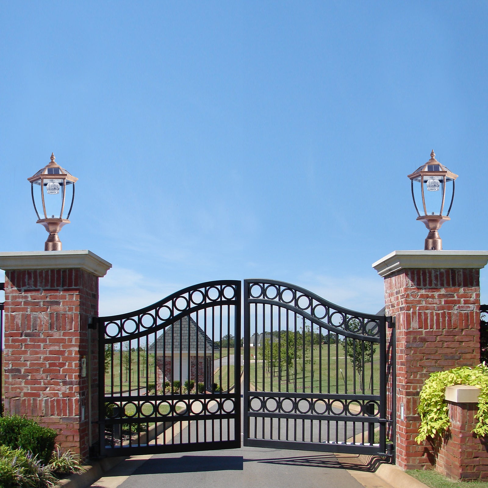 20'(H) Golden Solar Powered LED Outdoor Lantern, Vintage Garden Light with Elegant Glass Design