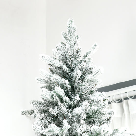 HOMCOM 8ft Snow Flocked Artificial Christmas Tree with 2003 Tips, Foldable Metal Stand, Easy Assembly, Hinged Xmas Tree for Home, Office, Holiday, Green
