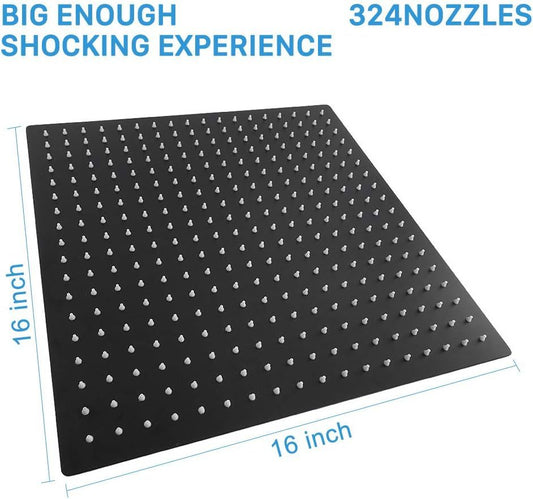 16 Inch Oversize Stainless Steel Rain Shower Head - Matte Black High Pressure Shower Head, Square Rainfall Showerhead - Waterfall Full Body Coverage - Universal Ceiling or Wall Mount