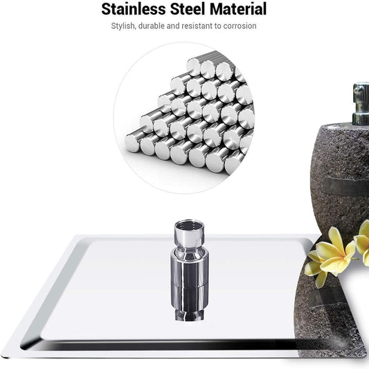 16 Inch Chrome Rain Shower Head, Square Ultra Thin 304 Stainless Steel High Pressure Shower Head