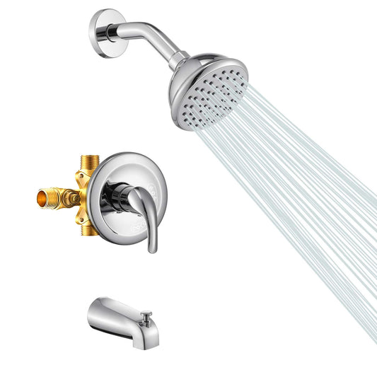 Chrome 6 Inch Shower Faucet wih Tub Spout Combo (Valve Included)